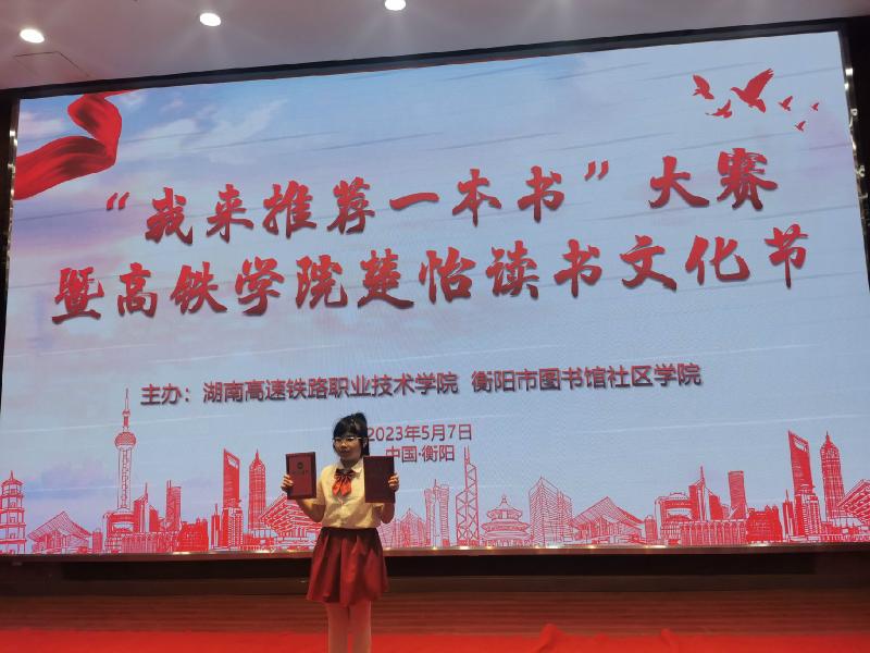 3月22日,为深入推进全民阅读,丰富人民群众精神文化生活,衡阳市图书馆和湖南高速铁路职业技术学院联合组织开展“我来推荐一本书”短视频荐书大赛活动。自活动开启之日,祁东县图书馆便通过线上线下渠道广泛宣传、积极参与,彭琬焱选手推荐了一本好书——《爱的教育》,根据投票数量荣获“网络人气奖”;5月7日,祁东县图书馆率队赴现场参赛,在评委和观众的共同见证下,彭琬焱荣获“我来推荐一本书”现场比赛“三等奖”。