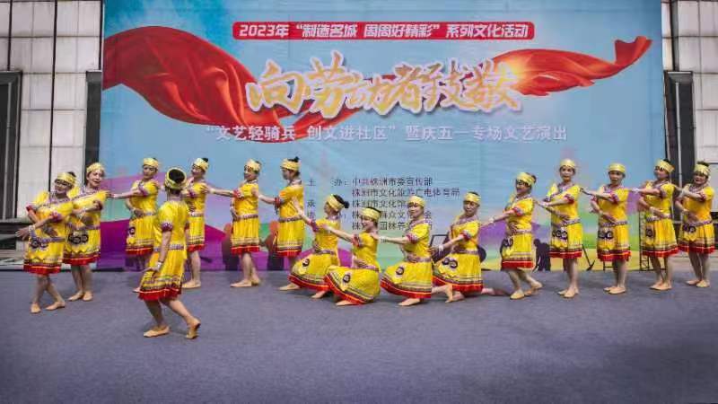 4月29日,芦淞区文化志愿服务团队畅想艺术团在河西钢琴广场了参加中共株洲市委宣传部、株洲市文化旅游广电体育局主办,株洲市文化馆协办的2023年文艺轻骑兵创文进社区,暨庆五一专场文艺演出活动,并为该活动提供免费文化服务。