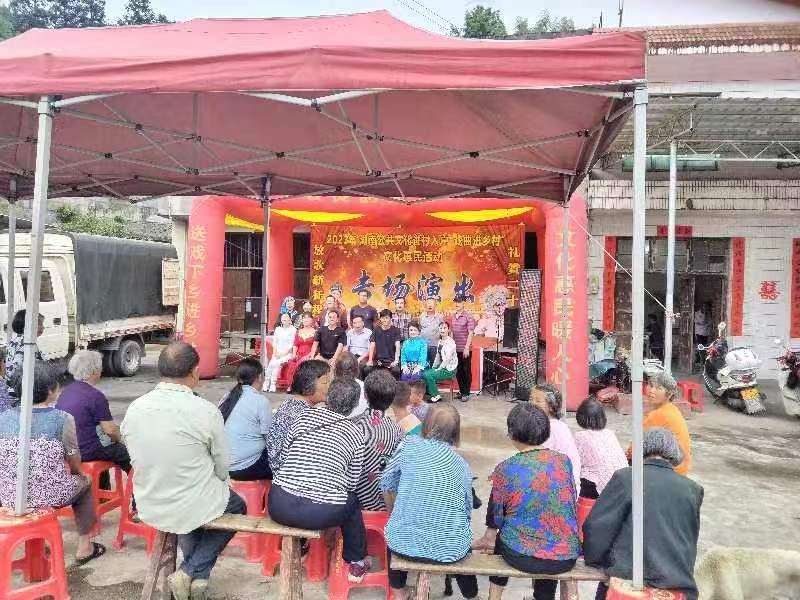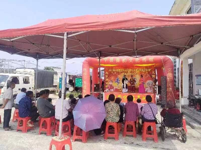 为弘扬优秀传统文化,丰富群众文化生活,5月19日,新宁县文化旅游广电体育局组织的戏曲进乡村文化演出队走进崀山镇肖市村、分水村开展“湖南省公共文化进村入户·戏曲进乡村”文艺演出活动。在各演出现场,文化广场上充满了欢声笑语,村民们兴高采烈地观看戏曲、舞蹈、歌曲等节目。