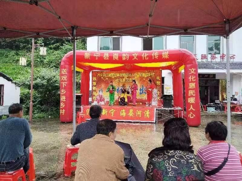 为弘扬优秀传统文化,丰富群众文化生活,5月23日,新宁县文化旅游广电体育局组织的戏曲进乡村文化演出队走进崀山镇黄背村、窑市社区开展“湖南省公共文化进村入户·戏曲进乡村”文艺演出活动。在各演出现场,文化广场上充满了欢声笑语,村民们兴高采烈地观看戏曲、舞蹈、歌曲等节目。