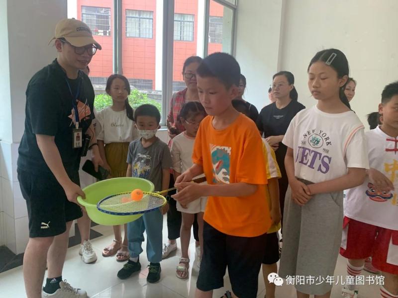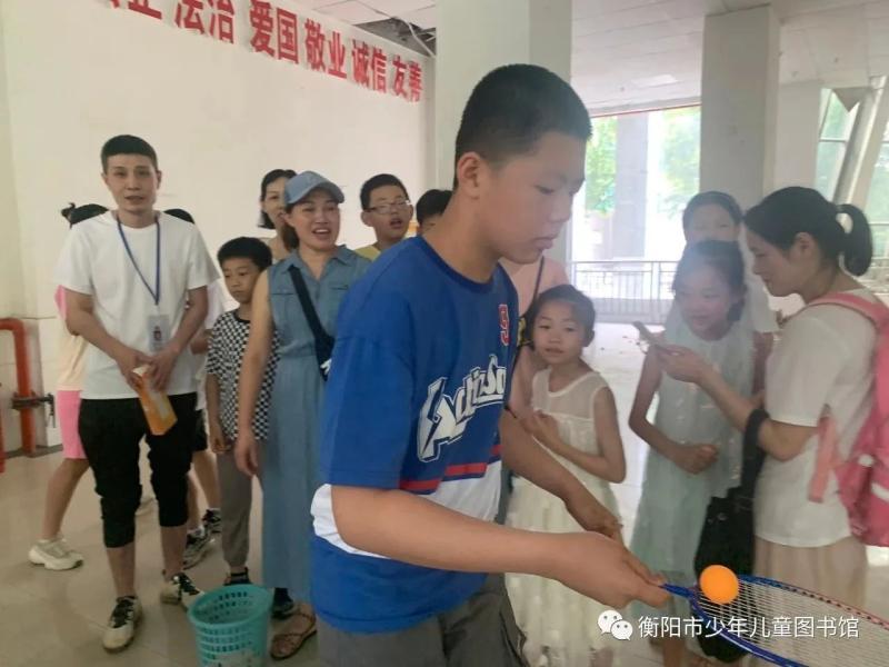 紧接着,活动的第二环节——趣味游艺运动会开始了,小读者们通过抽签分成两组,队员在完成跳绳10下后手握羽毛球拍护送乒乓球倒入桶中,相互接力完成规定动作,最后用时最快,得球最多的必胜组获胜,活动现场加油声,欢笑声,不绝于耳。