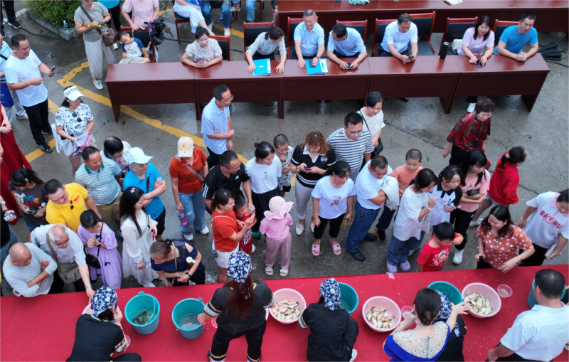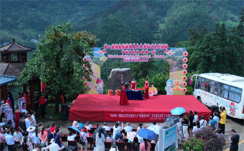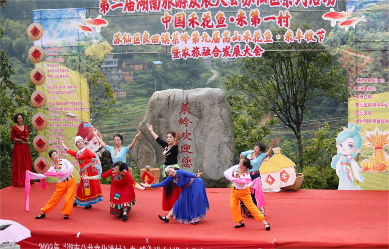 湖南公共文旅云网讯(通讯员:黄建华)8月23日,苏仙区良田镇菜岭村农民自办的高山禾花鱼•米丰收节热闹欢腾,老百姓在自家稻花香里庆丰年,家家户户领着来自四面八方的客人下田抓鱼。节会开幕式上,由苏仙区文旅部门组织的送戏下乡演出精彩纷呈,大家一同感受菜岭丰收的喜悦。现场吸引近4200名群众参与本次活动。