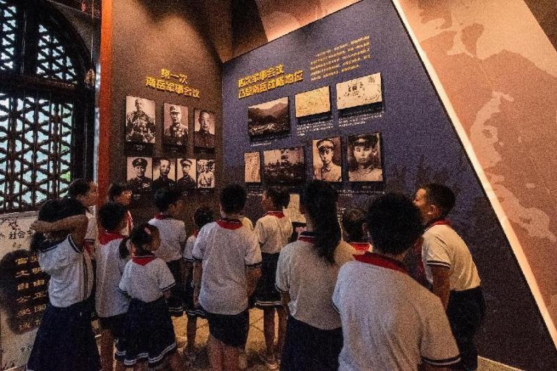 接着,在抗战纪念堂, 学生们参观了《南岳与抗战》陈列展。同学们以小小讲解员的身份讲解了国共第二次合作抗日战争时期,两党在这里举办的三期“南岳游击干部训练班”以及四次军事会议等事迹。