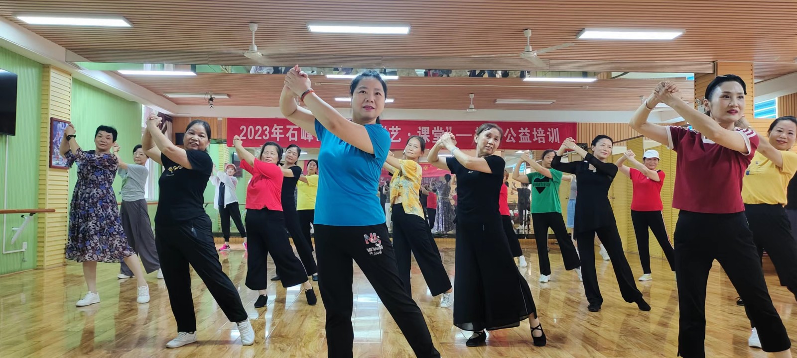 为加强公共文化服务体系建设,提升基层舞蹈骨干艺术素质,推进我区群众排舞的蓬勃发展。9月11日、12日下午,石峰区文化馆在二楼1号舞蹈室开展“艺·课堂”排舞公益培训班,来自于社区、村49名爱好排舞者参加此次培训。