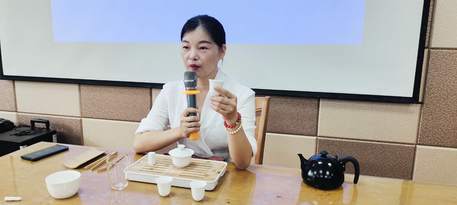 据了解,此次培训石峰区文化馆特邀请株洲市茶艺协会会长、子淼茶院主理人、国家二级茶艺技师、国家高级评茶员、茶艺考评员、高级茶艺讲师万子淼来授课。培训中,万老师从茶文化简史、茶叶、茶具的基础知识、茶礼仪到水与茶的比例、泡茶的水温、浸泡的时间长短、杯子的用法等泡茶的基本流程及技巧给大家讲解了茶道知识。随后讲师又从烫壶、置茶、温杯、高冲、低斟、分茶、敬茶、闻香、品茶等为大家演示了多种泡茶方法,并现场指导学员体验泡茶技巧及品茶。