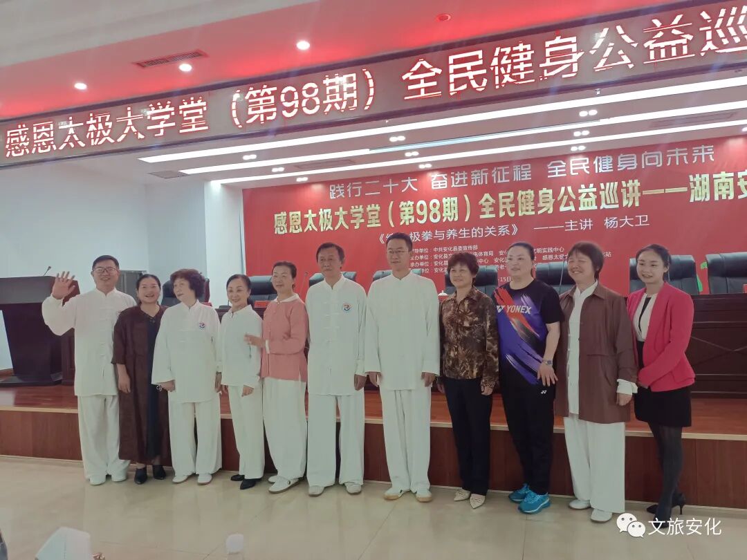 5月14日,由中共安化县委宣传部指导,安化县文化旅游广电体育局和安化县新时代文明实践中心主办的感恩太极大学堂(第98期)全民健身公益巡讲走进我县开讲。