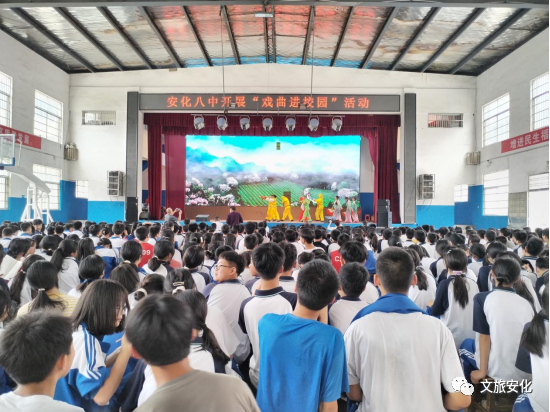 5月24日,由县委宣传部、县文旅广体局指导,梅城文化馆主办的“播撒艺术的种子”戏曲进校园活动在安化县第八初级中学举行。