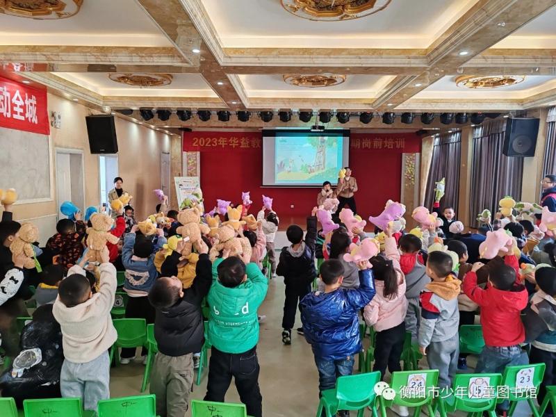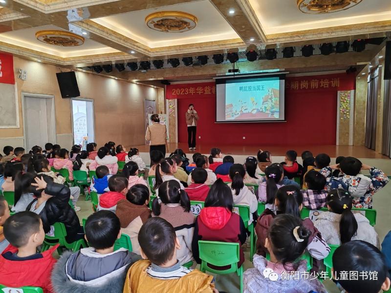 11月20日下午3点,衡阳市少年儿童图书馆在蒸湘区米琦幼儿园,开展了“萌娃读书会”低幼阅读活动第4期绘本故事分享会。现场由市少年儿童图书馆聘请颜娟老师给在场的120名幼儿带来了一堂名为《鸭屁股当国王》绘本故事分享会,故事讲述了名叫“鸭屁股”的鸭子,在坏国王的王国里遇到各种朋友的帮助打败坏国王,成为国王的故事。老师在欢快的氛围中分享了故事。在提问互动环节,孩子都们对鸭屁股的勇敢,智慧竖起大拇哥。