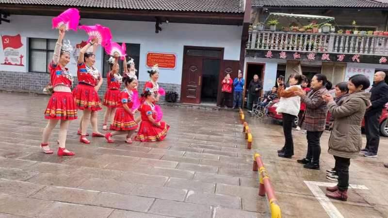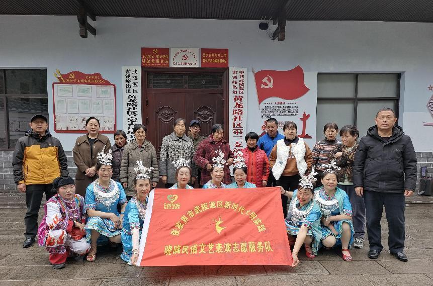 2023年11月11日,武陵源区文旅局和晓晓民俗演出队的志愿者一起在黄龙洞社区铁厂村广场上开展了一场文艺志愿服务活动。
