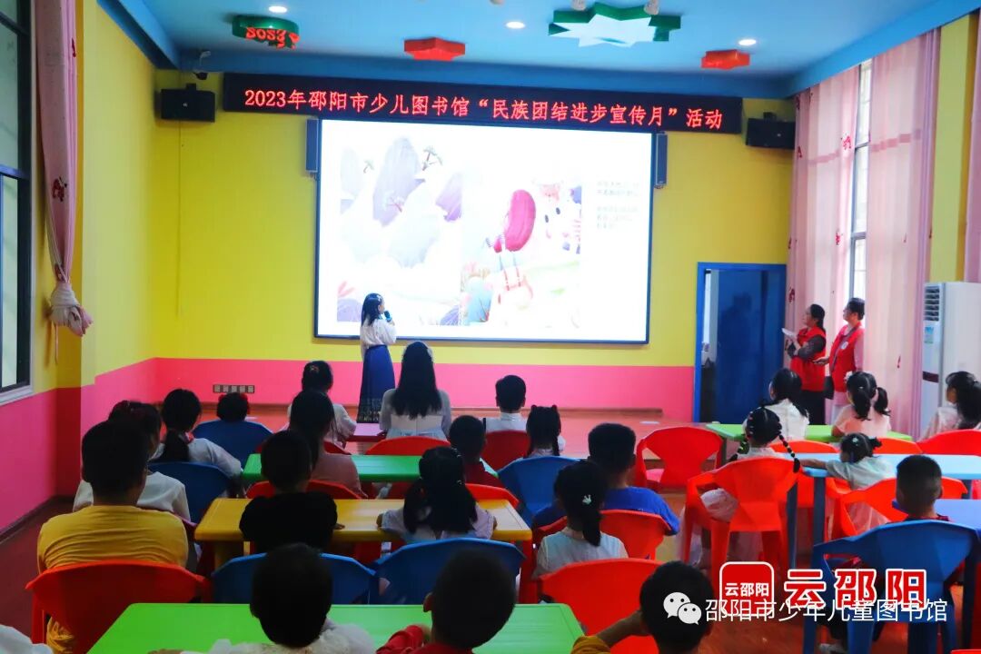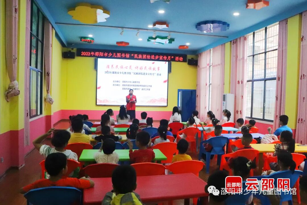 9月23日下午,由邵阳市少儿图书馆主办,邵阳市政协共青团青联界别委员工作室、市政协“与爱同行”委员工作室承办的“滋养民族心灵 讲好民族故事”——2023年邵阳市少儿图书馆“民族团结进步宣传月”活动在邵阳市少儿图书馆举行。