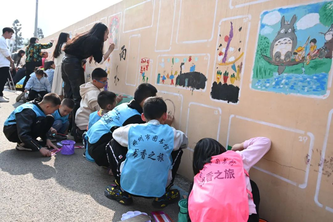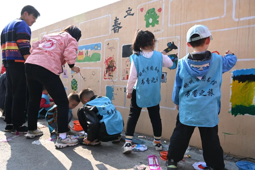 一画一特色,一墙一风景。在家长和志愿者协助下,现场活动气氛热烈,绚丽多彩、主题各异的图案和色彩在孩子们的巧手下不断渲染,让原本单调拙朴的墙体呈现出全新的生机活力和人文面貌,不断吸引他人驻足观看。此次活动通过为市民读者提供展示艺术才华的舞台,不仅营造了和谐向上、健康文明的生活教育氛围,更有效拉进了家庭亲子之间的情感距离,家长、孩子、志愿者携手为乡村振兴贡献自己的力量,共创美好回忆。
