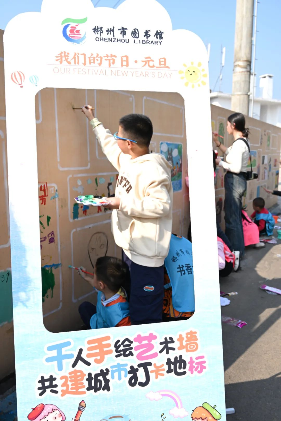 时光荏苒,岁月如梭,辞旧迎新之际,2023年12月30日,郴州市图书馆联合相关单位开展的“我们的节日 · 元旦——千人手绘艺术墙,共建城市打卡地标”活动在北湖区华塘镇枝青艺术村举行,吸引400余市民及志愿者参与。