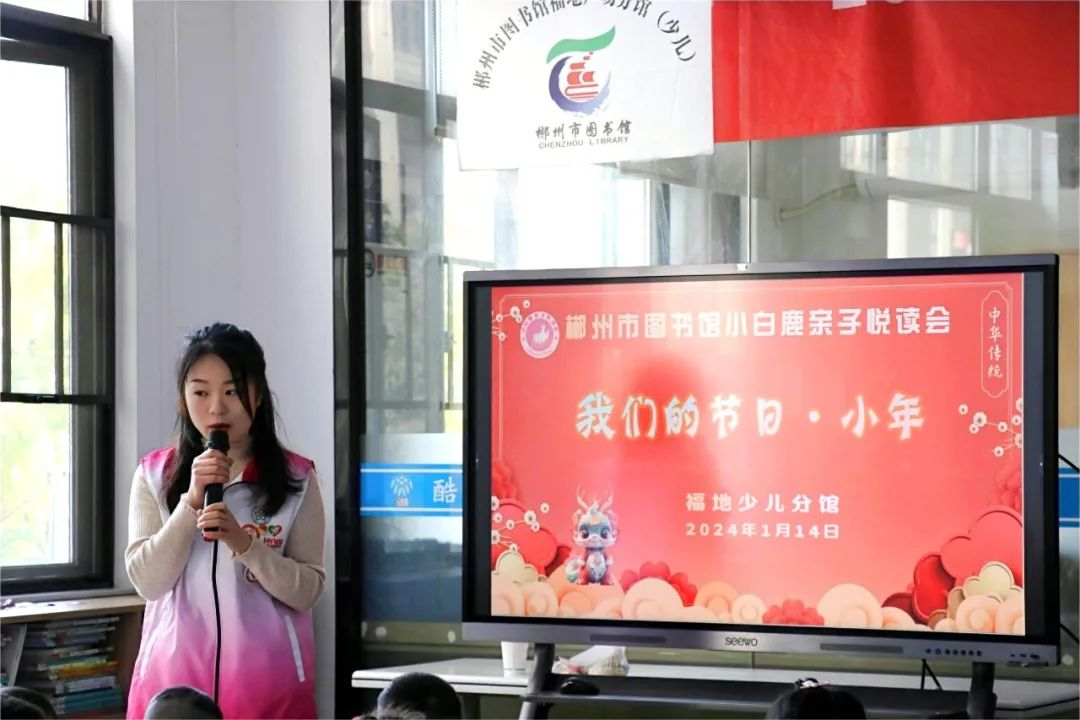 为增进未成年人思想道德建设,加深对中国传统节日文化了解,1月13号至14号,郴州市图书馆小白鹿亲子悦读会“我们的节日·小年”活动在市本馆主会场、苏仙区图书馆分会场、福地广场分馆会场、王仙小学露泉分馆会场举行,120组亲子家庭参与,服务市民读者300余人次。