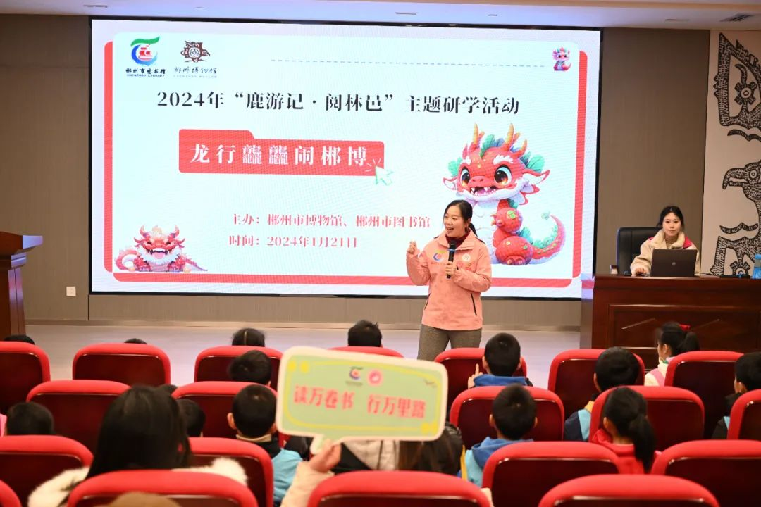 2024年1月21日,我馆“龙行龘龘闹郴博”鹿游记·阅林邑文旅研学活动在郴州市博物馆举行,100余市民读者及志愿者参加,让孩子们了解郴州的历史文化及特色习俗,更加热爱我们的祖国和家乡,热爱我们的传统文化。