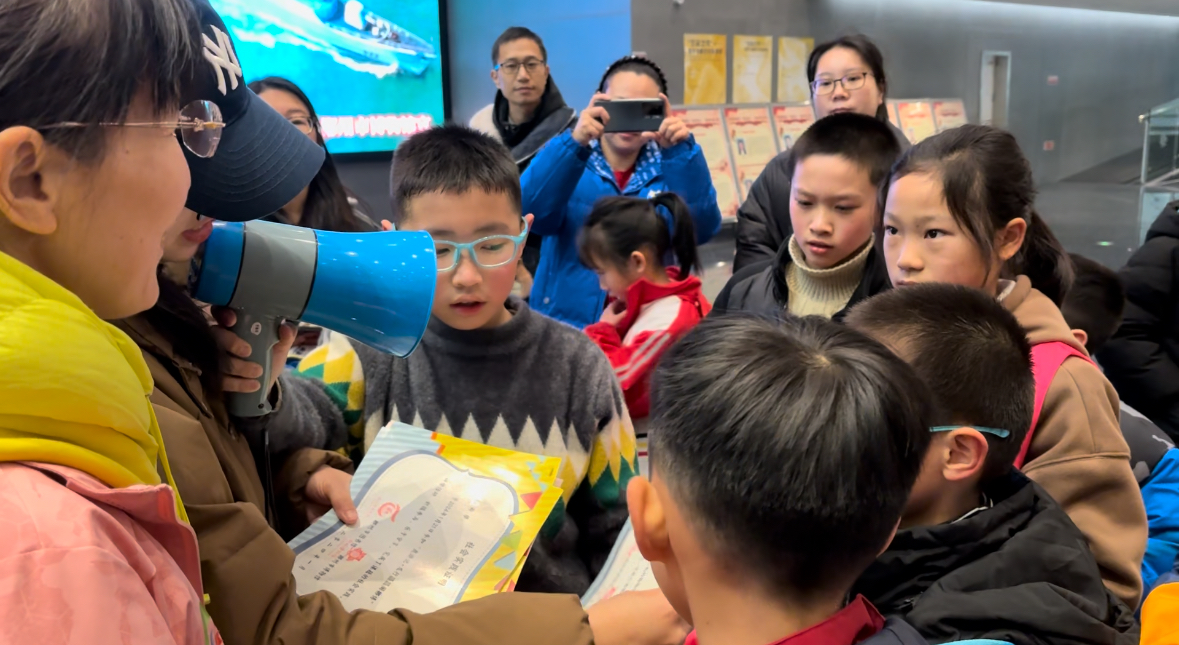 文旅研学怎么少得了打卡环节?孩子们拿着工作人员发放的寻宝地图,奔赴各个主题展厅找对应的文物并拍照打卡,集齐九件文物图片后便可获得勋章一枚,小读者在寻宝、探宝、赏宝的环节中体会文物的精美与先民的智慧,同时检验他们此次研学活动是否在认真了解文物背后的历史,并培养他们的文物保护意识。
