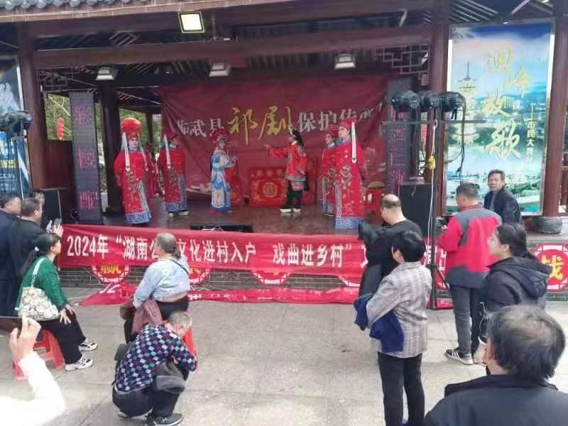 为弘扬优秀传统文化,丰富群众文化生活, 临武加大文化保护与宣传,营造良好文化氛围,打造良好营商环境。2024年2月14日下午临武县祁剧保护传承中心在临武县东塔公园开展2024年“湖南公共文化进村入户·戏曲进乡村”文化惠民活动。精彩的节目吸引了该村不少观众前来观看。传统戏曲身段表演群众喜闻乐见的节目上演,现场的观众表示他们非常开心能够观看此次演出。
