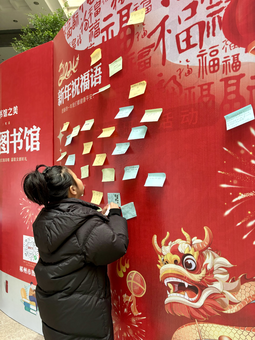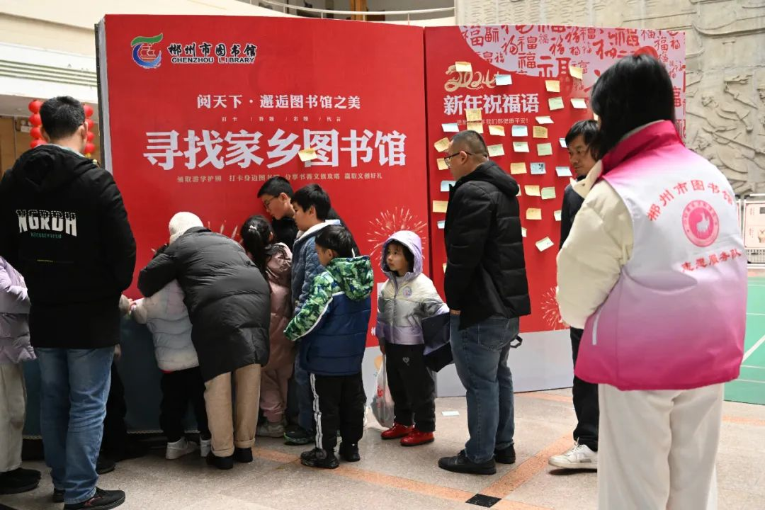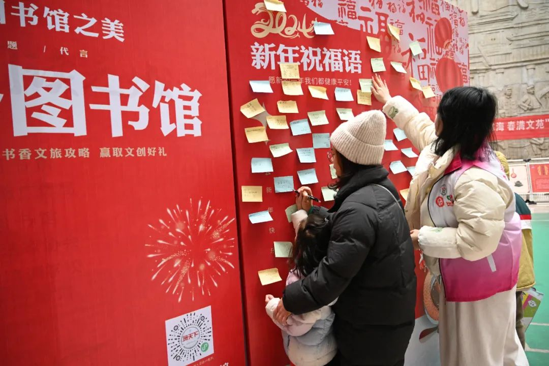 “寻找家乡图书馆”活动吸引不少市民打卡,发现图书馆,走进图书馆......祝福墙上一张张便签、扫五福集五福、手书送祝福、楹联对对碰,都流露出人们对美好生活的祝福向往,为新春佳节增添了浓厚的文化氛围。