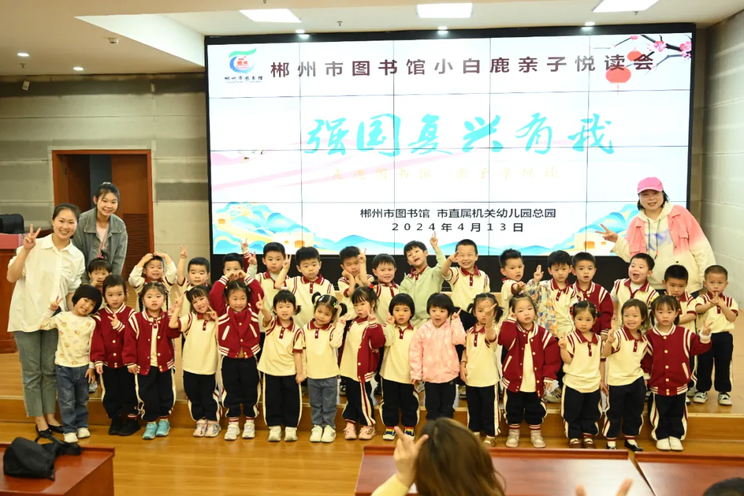 4月13日至14日,全民阅读月 “ 爱读书的小猪”主题阅读推广活动在市本馆、福地少儿分馆、王仙小学露泉分馆、苏仙区图书馆会场举行,150组亲子家庭参与。同时,来自郴州市委机关幼儿园总园的60组亲子家庭来到郴州市图书馆参加“强国复兴有我——走进图书馆·亲子享悦读”活动。