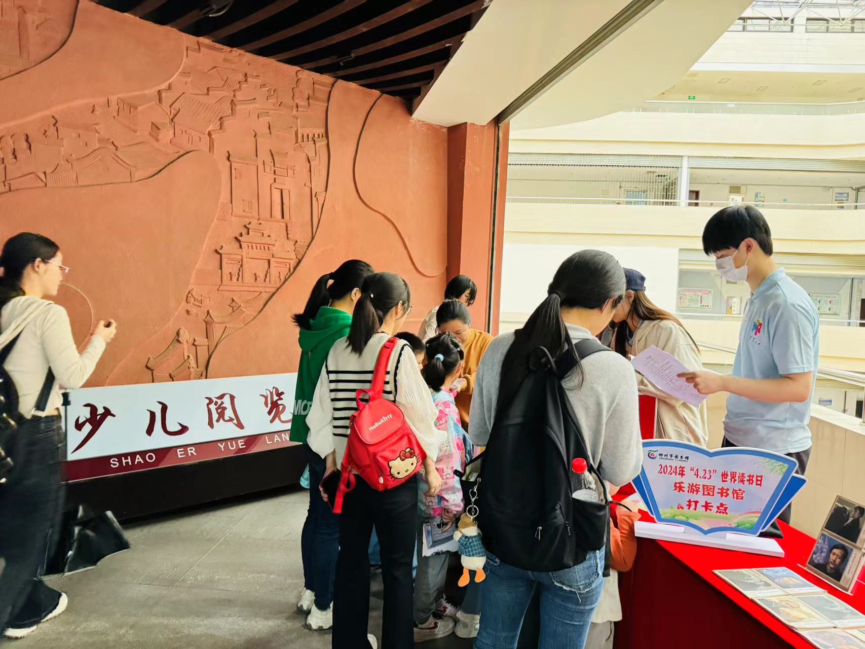 活动现场设置了“图书馆初印象”“文化宝藏通典馆”“绘本馆初体验”“小白鹿亲子悦读会”“国粹非遗皮影体验”“拯救书宝宝行动”等阅读体验项目,可以看展览、读绘本、赏电影、做手工、参与知识答题,通过一场沉浸式阅读盛会,让市民读者探秘图书馆、了解图书馆、爱上图书馆。