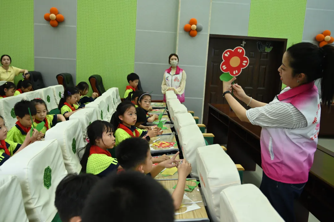恰逢母亲节来临之际,志愿者带领小读者们开展制作棒棒糖大红花的延伸活动。在家庭生活中,小朋友能帮上忙的不多,但是能做的力所能及的也不少,这不,一朵大红花送给妈妈,感谢她对自己无微不至的爱和照顾,对家庭伟大而沉默的无私付出。