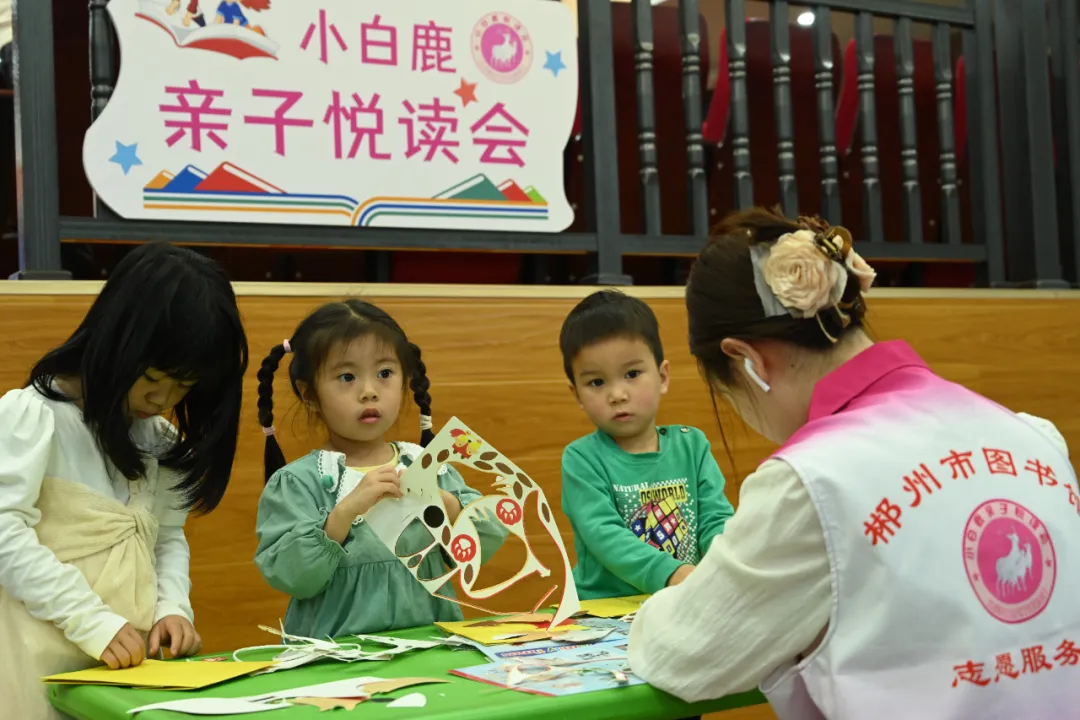 4月27日至28日,全民阅读月系列“吃书的狐狸”主题阅读活动在市图书馆、福地少儿分馆、王仙小学露泉分馆、苏仙区图书馆会场举行,120组亲子家庭参与。