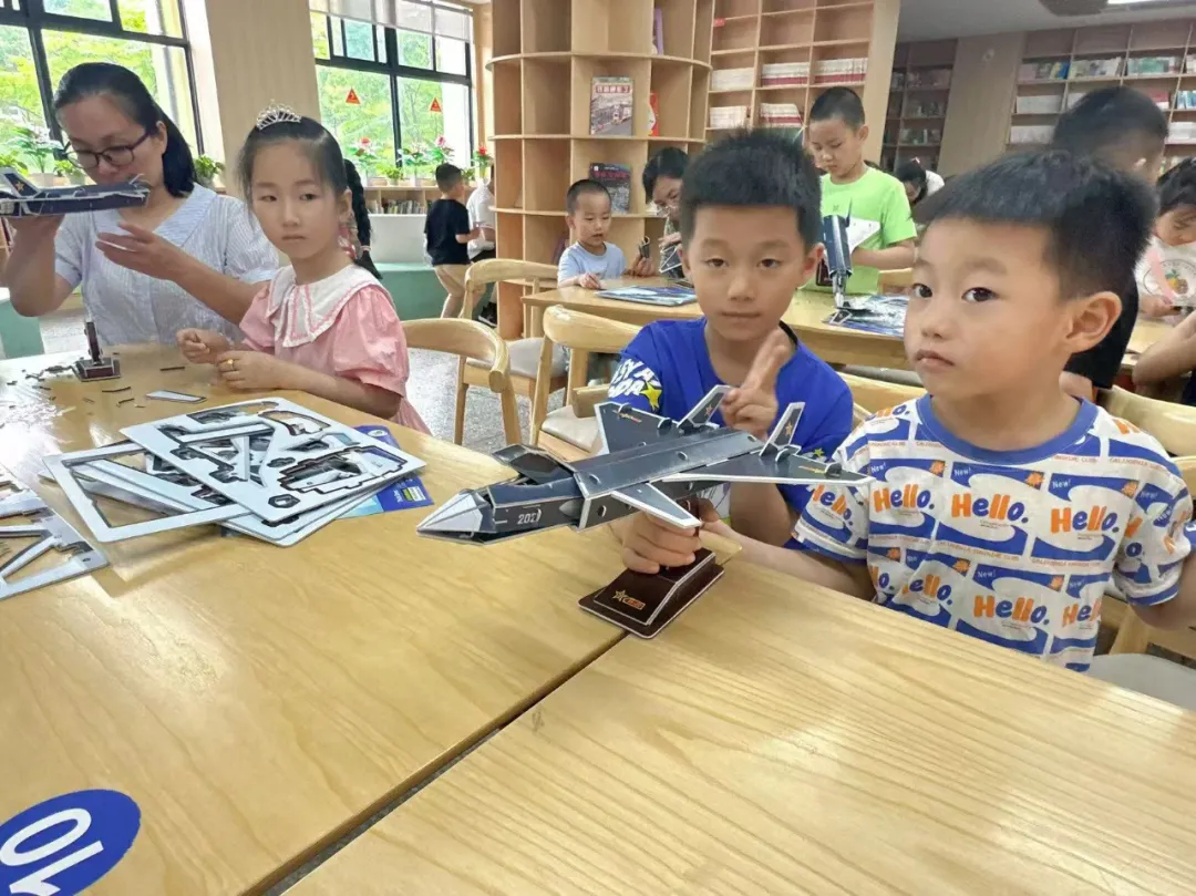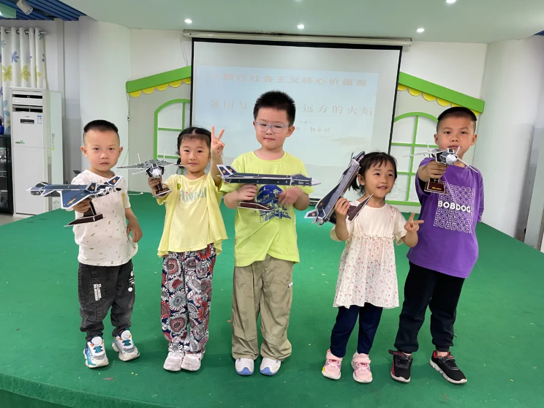 延伸活动,志愿者和家长携手孩子们一起制作歼—20战斗机、长征系列火箭,观看郴州711矿纪录片《伟大的功勋》,进一步去了解这位伟大科学家的生平事迹,也希望孩子们能从中得到感召,埋下科技兴国、科技强国、“强国复兴有我”的种子。