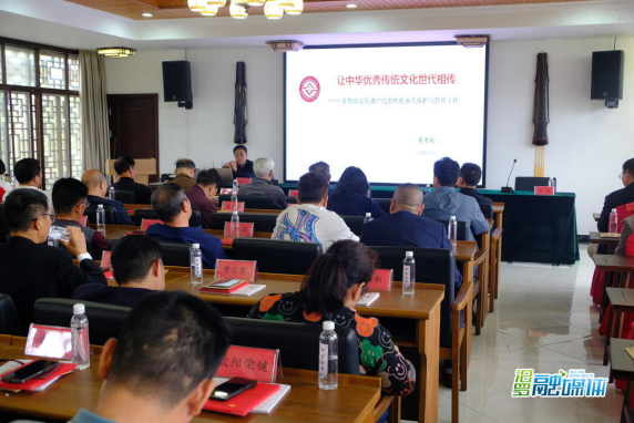 作为特邀讲师,省文化和旅游厅非遗处原副处长、二级调研员窦雪松以《让中华优秀传统文化世代相传——非遗代表性传承人保护与管理工作》为题作非遗保护专题讲座。他从法律法规层面,详细解读了非物质文化遗产代表性传承人的认定、权利、业务和责任,让在场听众受益匪浅。