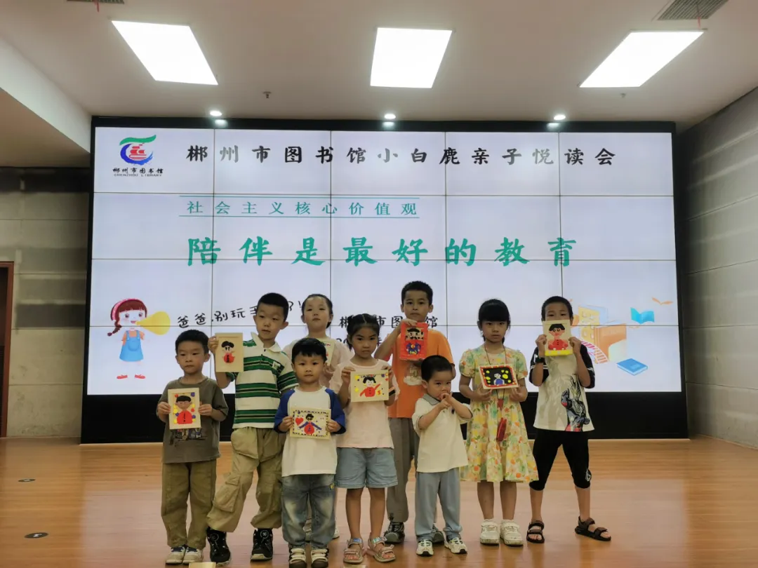 2024年6月15日,郴州市图书馆小白鹿亲子悦读会“陪伴是最好的教育”父亲节主题活动在市本馆、苏仙区图书馆会场、福地少儿馆、王仙小学露泉分馆举行,120组亲子家庭参加活动。