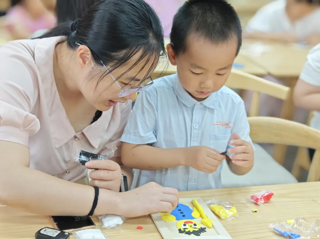 延伸活动,父母陪伴孩子们制作“超人爸爸”黏土相框,看着自己的形象在孩子们的巧手下或揉或搓,一步步浮现,用心用情去体验孩子的每一瞬间的成长,感受其中那蕴藏着孩子们满满的爱。