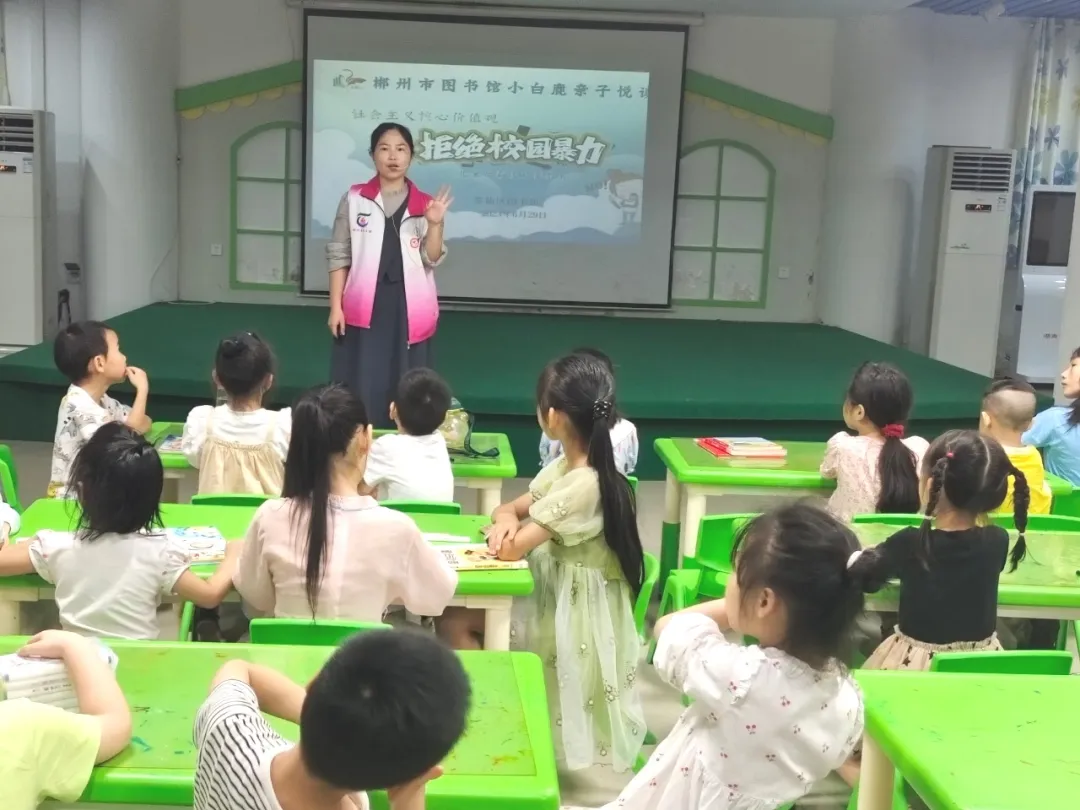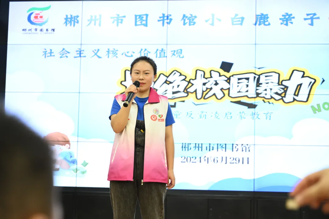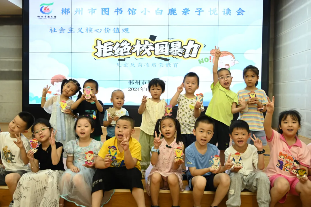 2024年6月29至30日,小白鹿亲子悦读会“关注儿童心灵成长·反霸凌”主题活动在市本馆、苏仙区图书馆会场、福地少儿馆、王仙小学露泉分馆举行,120组亲子家庭参加活动。