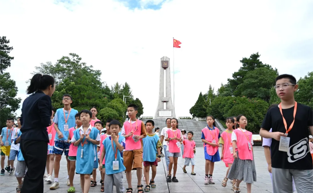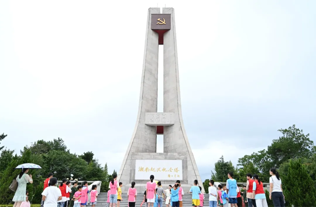 在“八一”建军节来临之际,为了让少年儿童更好地了解革命历史,传承红色基因,郴州市图书馆于 2024 年 7 月 31 日组织参观湘南起义纪念塔与烈士长廊活动,20余名少年儿童参加。