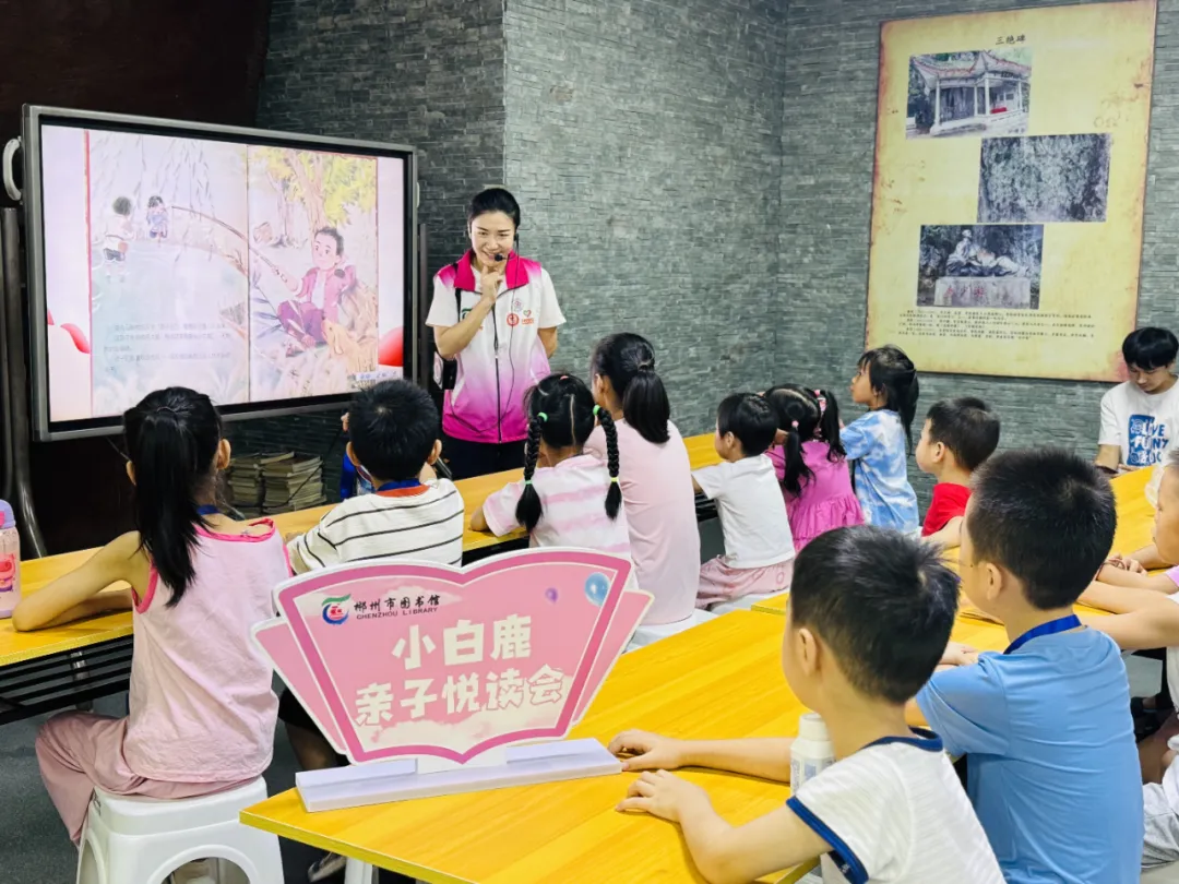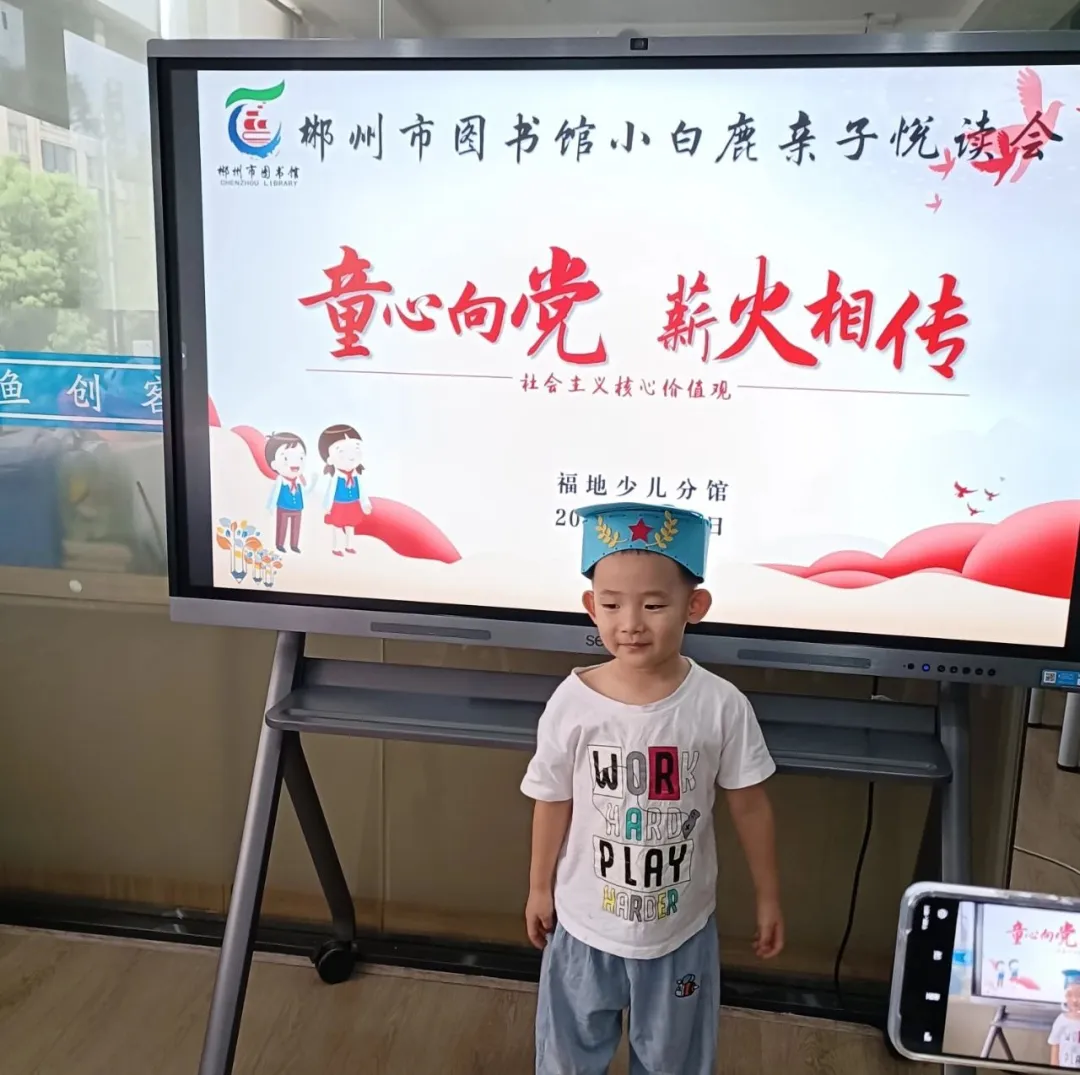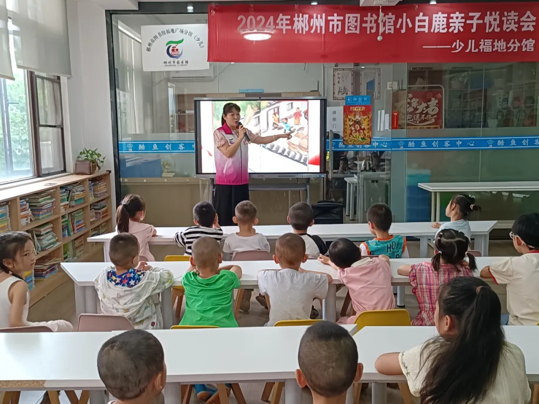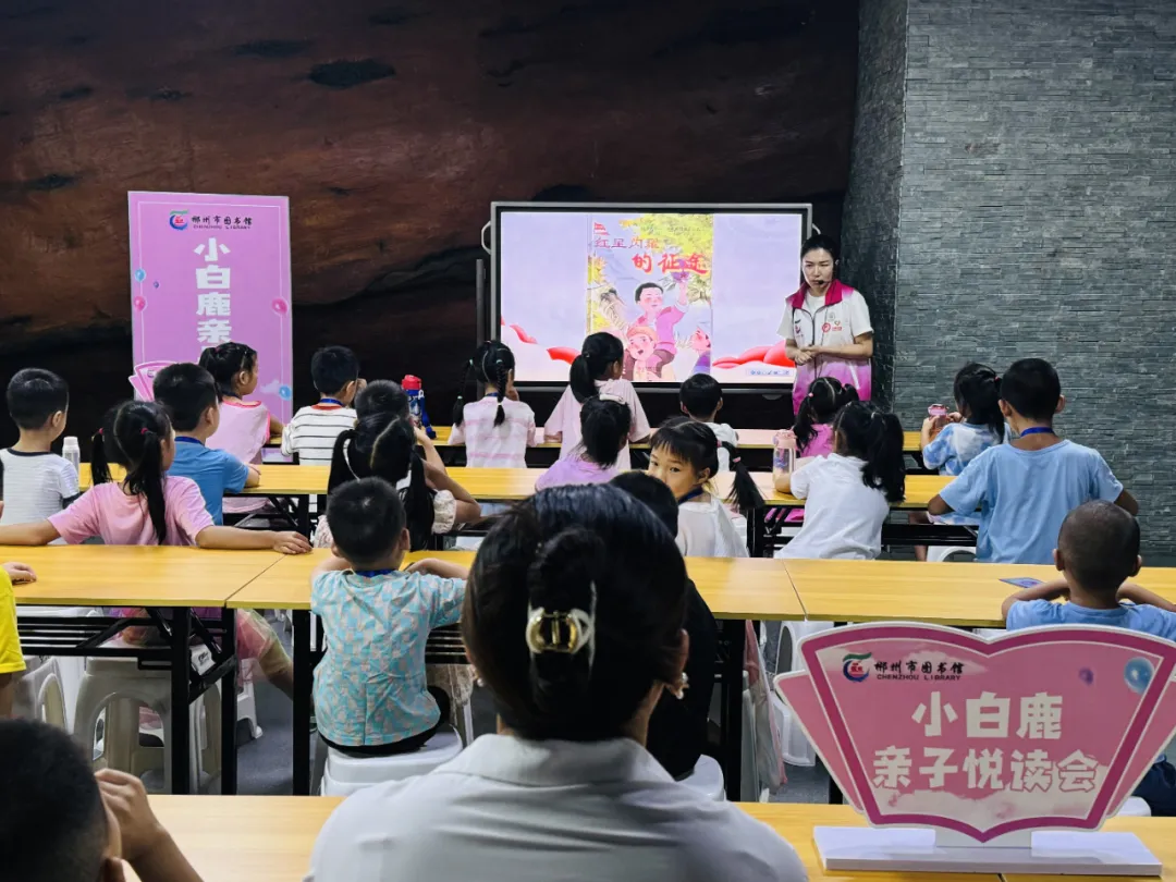 2024年7月27至28日,小白鹿亲子悦读会“童心向党·红星闪耀的征途”主题活动在市本馆、苏仙区图书馆会场、福地少儿馆、王仙小学露泉分馆举行,120组亲子家庭参加活动。