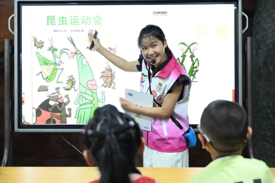 阅读会现场,小白鹿故事精灵讲述了《昆虫运动会》:今天,昆虫们要开一场别开生面的运动会!跑步比赛开始了,放屁虫的屁是起跑的信号,屎壳郎来参加比赛还没忘记滚着他的粪球。飞行比赛里,蝴蝶东飞飞,西飞飞,总也飞不到终点。投球比赛上的球,是潮虫蜷起身子变成的……最后的拔河比赛,是谁不小心剪断了绳子?让我们一起去看看吧。