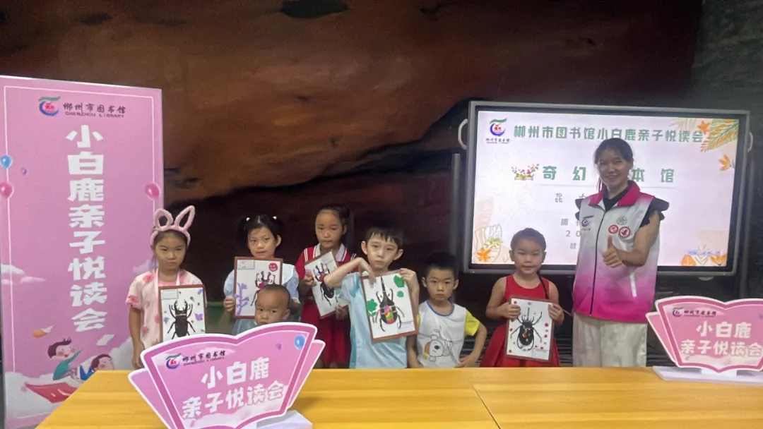 2024年8月10至11日,小白鹿亲子悦读会“奇幻绘本馆·昆虫运动会”主题活动在市本馆、苏仙区图书馆会场、福地少儿馆、王仙小学露泉分馆举行,120组亲子家庭参加活动。