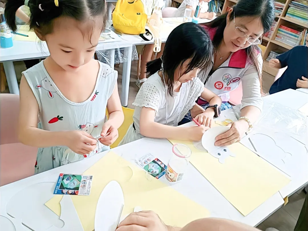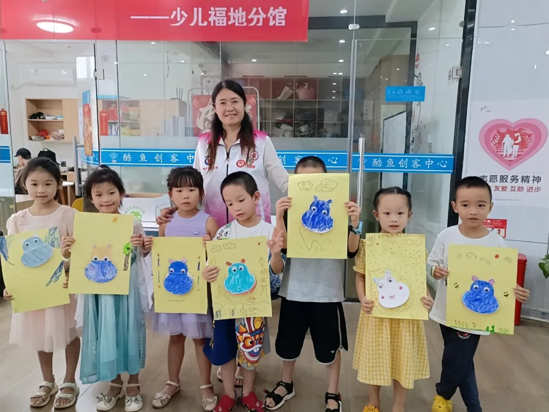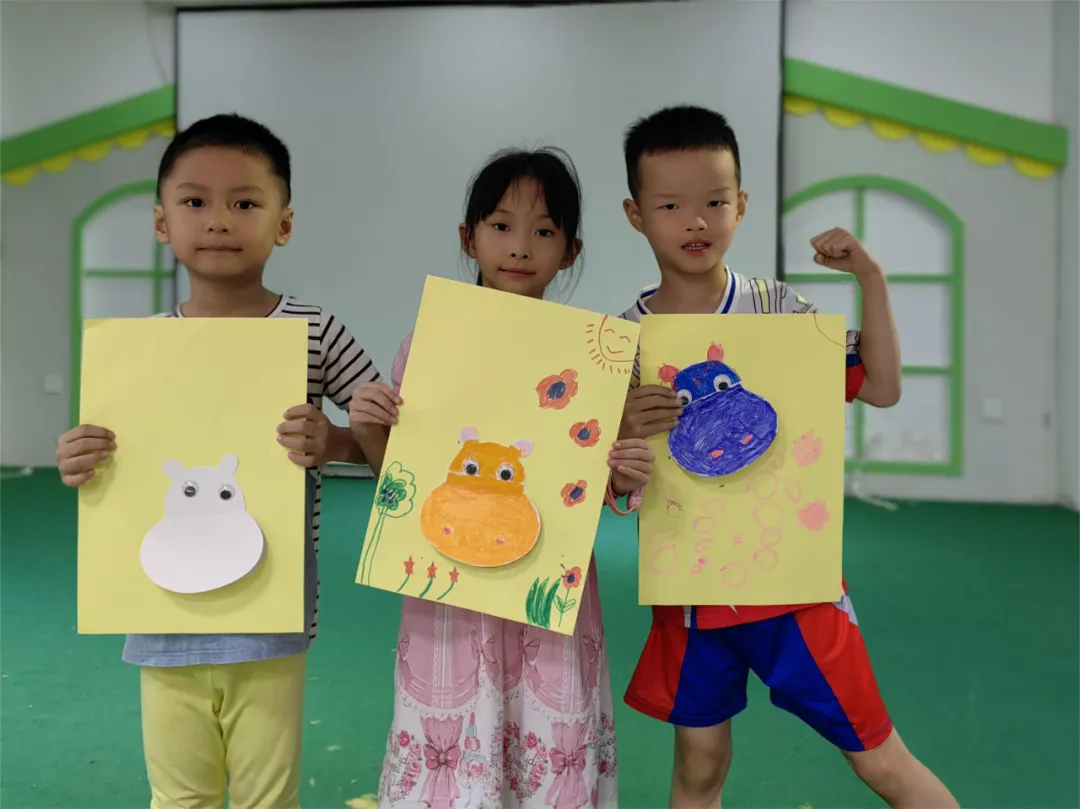 延伸活动,志愿者和家长带着孩子们一起制作蜡笔画,寻找那只有着巨大的体型、短短的四肢、鼓鼓的眼睛、可以90度张开的大嘴巴“河马先生”。