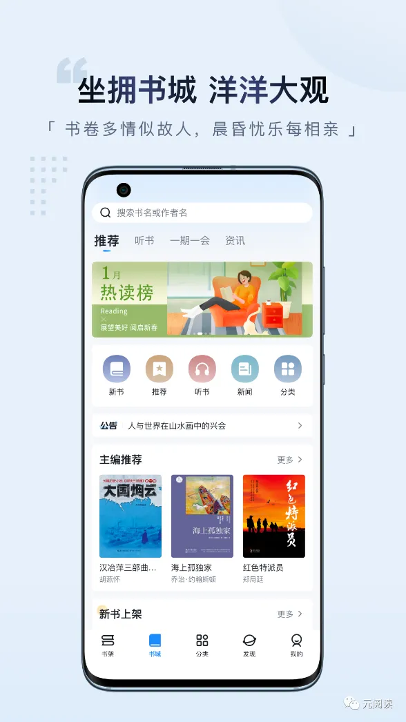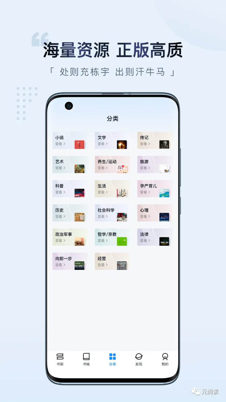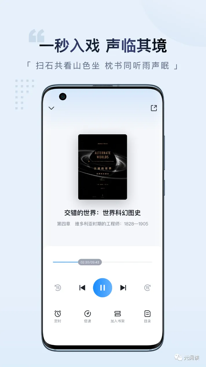 海量正版出版物电子书、有声书资源,集看书、听书功能为一体。看书累了?听书帮您解放双眼,用耳朵聆听世界!通勤、跑步、睡前、晨起、假期、开车、做家务,让您的碎片时间从此有价值。