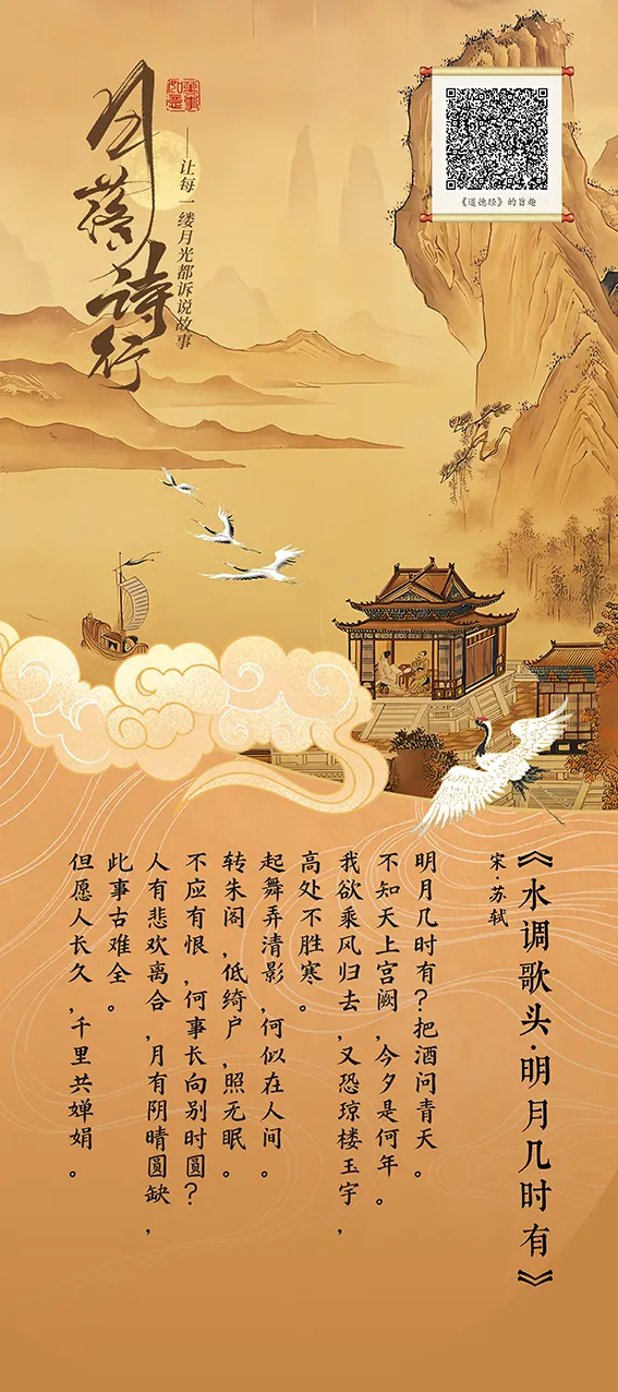 这一年中秋,苏轼在密州,词以月起兴,以与其弟苏辙七年未见之情为基础,围绕中秋明月展开想象和思考,把人世间的悲欢离合之情纳入对宇宙人生的哲理性追寻之中,表达了词人对亲人的思念和美好祝愿,也表达了在仕途失意时旷达超脱的胸怀和乐观的景致。