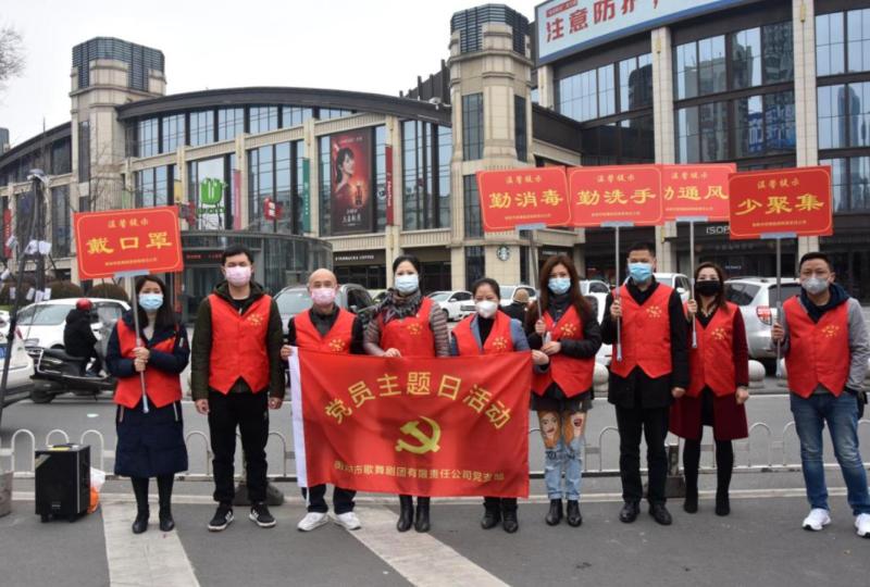衡阳市歌舞剧团有限责任公司党支部组织全体党员干部在晶珠广场十字路口进行"衡阳群众在行动、疫情知识宣传、文明交通劝导"主题党日活动。为不断提高群众对防控疫情的认识,做好疫情期间的自我防护,公司制作了宣传牌,放置在路口醒目位置,并对路口违反交通规则的路人进行劝导。