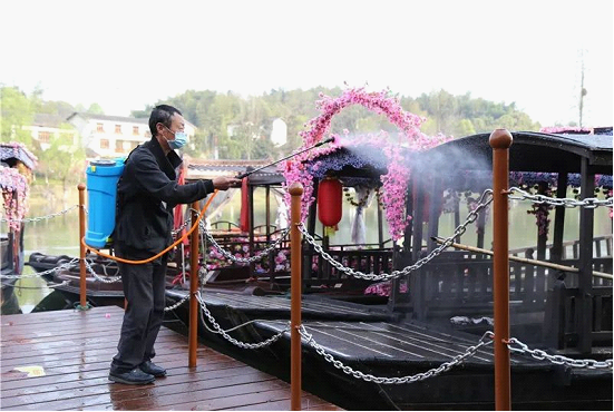 为阻击新冠病毒,中国湖南常德桃花源率先按下“暂停键”。经过近2个月没有硝烟的战斗,桃花源旅游管理区取得新冠肺炎0确诊病例、0疑似病例、0密切接触者的阶段性防控成果,辖区142.48 平方公里一片净土。3月18日《三个“0”,中国桃花源“净”候您闲庭信步》向市场传递一个“温馨”的信号。3月20日,重启“播放键”,桃花源景区开园迎客,截至当日15时,总购票人数为2558人,严谨的防控措施给市场呈现出《常德桃花源开园第一天,景区秩序井然》的良好局面。《“净”中有动,这个周末你来桃花源“洗肺”了吗?》中开园后第一个周末(3月21日、22日)风景名胜中国湖南常德桃花源购票人数7458人,吸引了众人在这个特殊的春天,来“中国天然氧吧”桃花源小息几日、拥抱自然,深深呼吸,吐故纳新,让肺部更干净,让身体更健康! 4月1日推出《欢迎你来桃花源,仍要绷紧“防疫”弦。到3月31日,桃花源景区自开园来共接待10.12万人次》,多个媒体以此为蓝本,向市场传播《常德桃花源开园人气旺 景区呼吁游客做好防疫措施》《桃花源绷紧“防疫弦” 守好“责任田”》等让游客放心、且具有魅力的信息。