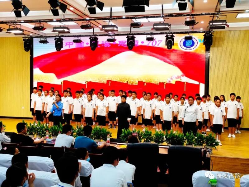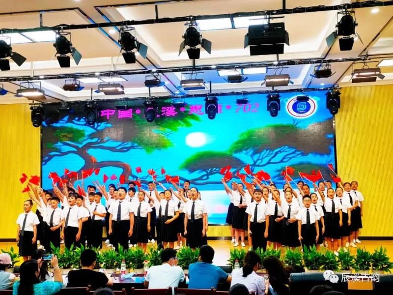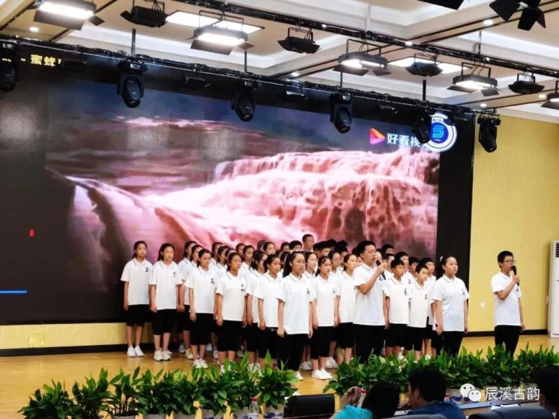 “我站在高山之巅,望黄河滚滚,奔向东南。惊涛澎湃,掀起万丈狂澜。”704班在《少年中国说》的诵读之后,以强烈地民族情怀,以铿锵有力的声音诵出了黄河桀骜不驯的血性和中华民族的英雄气概,在他们的诵读中和背景的展示中,黄河的气势宏伟和历史的源远流长,一 一再现于在场少年们的思绪之中。