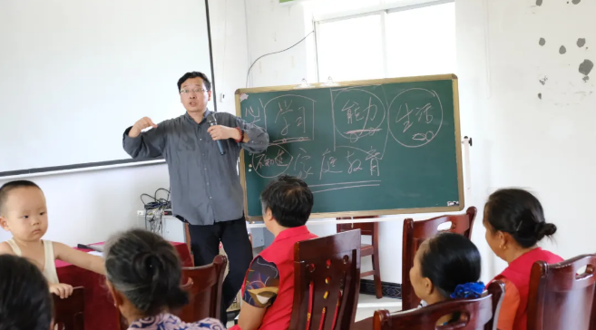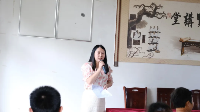 “家庭是人生的第一所学校,家长是孩子的第一任老师,要给孩子讲好人生第一课,帮助扣好人生第一粒扣子。”习近平总书记在全国教育大会上对家庭教育的阐述。首先由德厚国学公益专家志愿者大酉书院张晓院长给周家湾村的四十二位家长做了一场精彩的家庭教育讲座。
