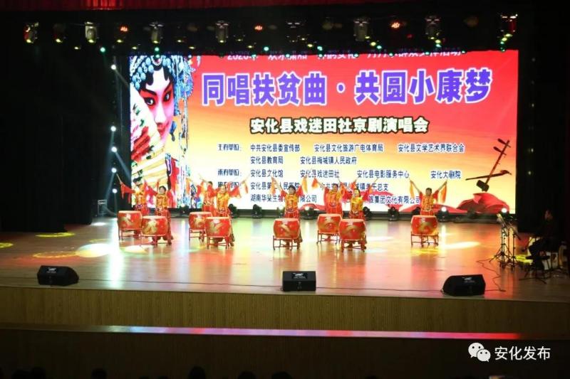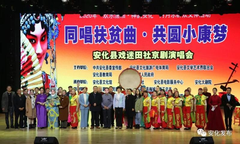 11月16日,2020年“欢乐潇湘·神韵安化”月月乐群众文体活动《同唱扶贫曲·共圆小康梦》安化县戏迷田社京剧演唱会在安化大剧院举行。