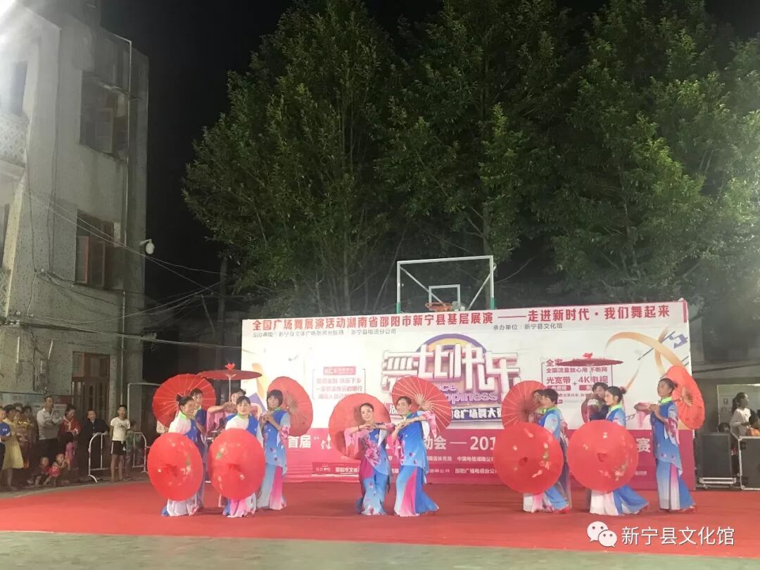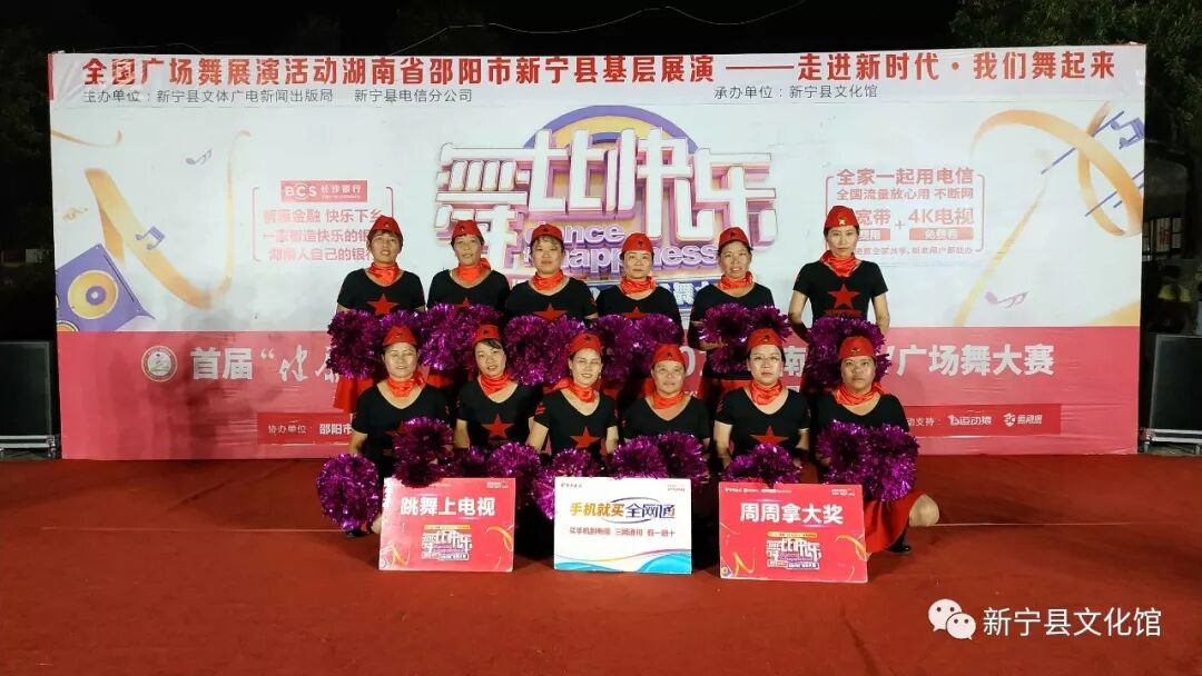 过六个展演点的激烈竞演,由新宁县文体广电新闻出版局、新宁县电信分公司主办,新宁县文化馆承办的全国广场舞展演活动湖南省邵阳市新宁县基层展演----走进新时代·我们舞起来活动圆满落下帷幕。