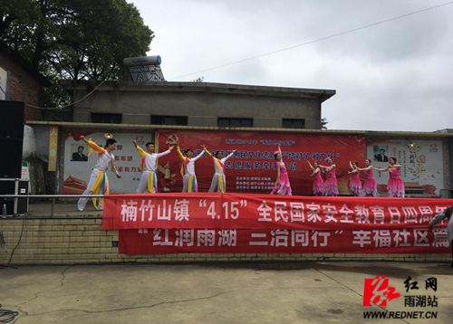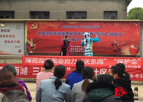 近日,楠竹山镇永丰社区广场上传来一阵悠扬的歌声,由雨湖区文化旅游广电体育局主办,楠竹山镇承办的2019年“我们的中国梦”文化进万家·送戏惠民文化志愿者“结对子·种文化”志愿服务牵手活动在这里举行,周边居民群众近200余人观看演出。