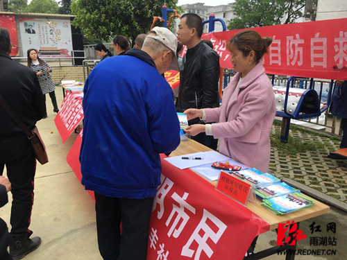 活动现场,工作人员发放宣传资料。