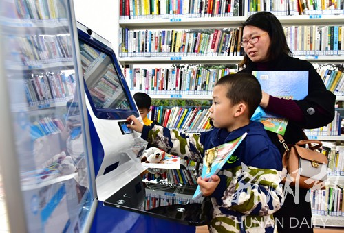“妈妈,我要借书。”一名穿着迷彩服的小男孩在家长的陪伴下,熟练地凑近自助借书机刷卡借书,捎上了他喜爱的漫画书。还有一些孩子靠在书架上全情投入地阅读自己喜欢的故事书,全然忘记了屋外的世界。自助图书馆虽然经常有人进出,却十分安静,井然有序。人们自觉遵守社会公德,轻进轻出,不大声喧哗,避免给旁人产生干扰,共同维护书屋秩序。