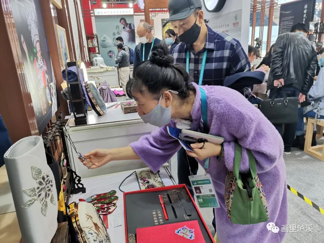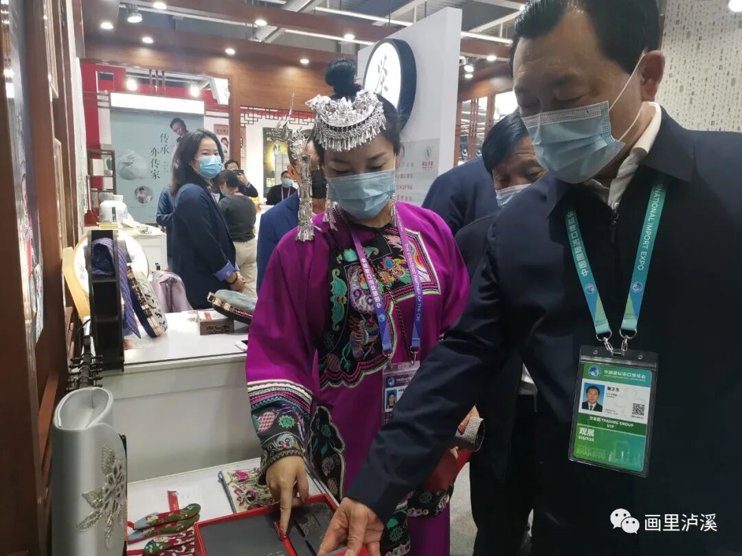进博会期间,湖南省文化和旅游厅党组成员、副厅长、省文物局局长陈远平和湖南省商务厅党组成员、副厅长王庭恺先后进馆参展,与苗族挑花传承人滕静蓉等进行了亲切交流,了解参展非遗项目的发展情况,鼓励他们好好利用进博会这个全世界各地文化的交流平台,希望各非遗项目传承人能以开放包容的姿态,多多体现锦绣潇湘的非遗底蕴,向世界展示湖南文旅新形象。