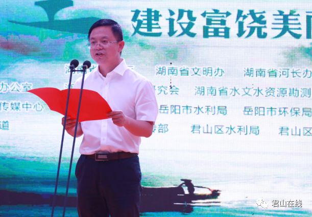 “让我们拥有共同名字——绿色卫士,让我们共修君子之德——守护碧水青山,让我们铸就共同梦想——建设富饶美丽幸福新湖南!”一句句掷地有声的话语响彻洞庭湖畔,6月29日,我省环保“绿色卫士”们齐聚洞庭湖畔,在“绿色卫士 君子之德”保护母亲河公益行动君山站,共同发出“我爱洞庭湖、守护母亲湖,保护长江”的倡议。省人大常委会原党组副书记、副主任陈叔红宣布活动启动,湖南省君子文化研究会会长李利君,湖南省君子文化研究会执行会长魏忠胜,省文明办副主任熊科文,市人大常委会副主任万岳斌出席,区委书记谢胜致辞,区委副书记白再兴现场接受采访,区领导余为、李爱玲、李卫兵等省市领导参加。