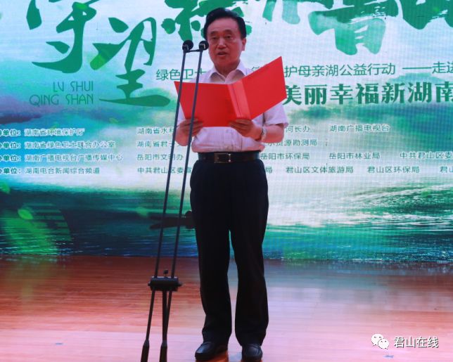此次公益行动是由省环境保护厅、省文明办、省水利厅、湖南广播电视台、省绿色卫士联合办公室、省君子文化研究会、省水文水资源勘测局共同主办,君山区是该公益行动的第五站。近年来,在省委省政府的指导下,岳阳市君山区坚持围绕“湖畅、水清、堤固、岸绿、景美”的目标,严格湿地和生物多样性保护,落实生态保护红线制度,全面推进长江、洞庭湖沿岸、黑臭水体周边、退养规模养殖场等重点地段生态修复;对长江岸线外坡、洲滩和可视范围内宜林地及裸露山体全部绿化,并以长江岸线为基线规划建设生态绿带;进一步抓好采桑湖生态修复,加大鸟类食物基地建设,打造“百鸟乐园”、“观鸟之都”;进一步推进工业园区生态绿化,打造好生态工业园区。对于长江和洞庭湖的保护和治理落小、落细、落实,助推了“美丽中国”、“最美湖南”建设。