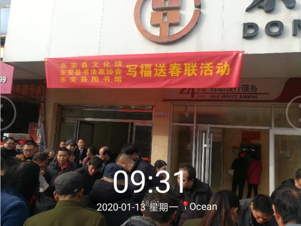 1月13日上午,由东安县文化馆、东安县书法家协、东安县图书馆联合主办的"写福送春联"主题活动在石期市镇举行。来自书法艺术界的名家们,在民众的欢歌笑语中,挥毫泼墨拉开阵势,为现场的民众书写春联,送去新年祝福。